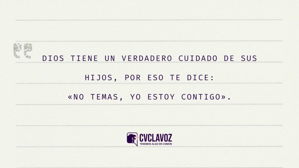 «No tengas miedo, porque yo estoy contigo; no te desalientes, porque yo soy tu Dios. Te daré fuerzas y te ayudaré; Pues yo te sostengo de tu mano derecha; yo, el Señor tu Dios. Y te digo: No tengas miedo, aquí estoy para ayudarte.»